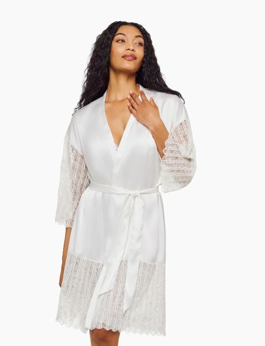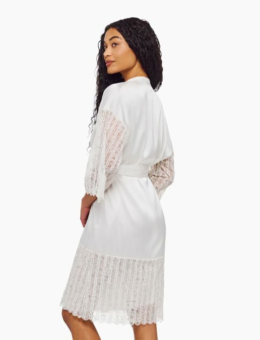 Capturing the allure of Venetian nights, this collection pairs striped stretch lace with lightweight satin for a look that’s both mysterious and refined. With delicate shimmer and flowing silhouettes, Misteriosa is designed for layering, lounging, and lingering a little longer. The Misteriosa Robe is lightweight and elegant—designed to drape effortlessly over your sleepwear to complete your night with quiet sophistication.